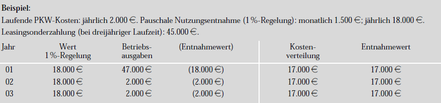 4. Zinsen zur Finanzierung eines Gesellschafter-Darlehens bei den Kapitaleinkünften Grundsätzlich können Aufwendungen im Zusammenhang mit privaten Kapitalerträgen nicht als Werbungskosten abgezogen werden. Diese sind mit dem Sparer-Pauschbetrag von 801 Euro (Ehepartner 1.602 Euro) abgegolten. Eine Ausnahme gilt u. a. für Darlehen an die „eigene“ Kapitalgesellschaft. Wenn die Beteiligung mindestens 10 % beträgt, sind die von der Kapitalgesellschaft gezahlten Zinsen beim Gesellschafter einerseits mit dem persönlichen Steuersatz zu versteuern (§ 32d Abs. 2 Nr. 1 Buchst. b EStG) und unterliegen nicht dem 25 %igen Abgeltungsteuersatz; andererseits können Aufwendungen in diesem Zusammenhang als Werbungskosten in tatsächlicher Höhe abgezogen werden. Das gilt z. B. für Zinsen zur Refinanzierung eines Gesellschafterdarlehens. Dabei sind Refinanzierungszinsen selbst dann abzugsfähig, wenn die Gesellschaft aufgrund einer Notlage die Zinsen an den Gesellschafter nicht (mehr) zahlen kann. Insoweit entsteht dann beim Gesellschafter ein steuerlicher Verlust bei den Einkünften aus Kapitalvermögen. Verzichtet der Gesellschafter allerdings auf die Rückzahlung des Darlehens, um das Eigenkapital und die Ertragslage der Gesellschaft zu stärken, fallen insoweit keine Kapitalerträge an. Damit entfällt auch der bisherige Abzug von Zinsen für das Refinanzierungsdarlehen. Das gilt auch dann, wenn der Darlehensverzicht mit einem Besserungsschein verbunden wird. Da der Verzicht erfolgt ist, um die Gesellschaft zu stärken und die Gewinnerwartungen zu verbessern, besteht nunmehr ein Zusammenhang des Refinanzierungsdarlehens direkt mit der Beteiligung, sodass die Zinsen als Aufwendungen im Zusammenhang mit (zukünftigen) Gewinnausschüttungen anzusehen sind. Da allerdings Beteiligungserträge grundsätzlich der Abgeltungsteuer unterliegen, ist eine Berücksichtigung von Werbungkosten (Zinsen) nur möglich, wenn das sog. Teileinkünfteverfahren beantragt wird; in diesem Fall kommt ein Abzug der Refinanzierungszinsen zumindest in Höhe von 60 % in Betracht. Ein entsprechender Antrag muss bereits mit Abgabe der Steuererklärung gestellt werden (§ 32d Abs. 2 Nr. 3 EStG). 5. Private PKW-Nutzung: Kostendeckelung Nutzt ein Unternehmer einen betrieblichen PKW auch für private Zwecke, hat er insoweit eine Nutzungsentnahme zu versteuern. Die Höhe der Entnahme bemisst sich